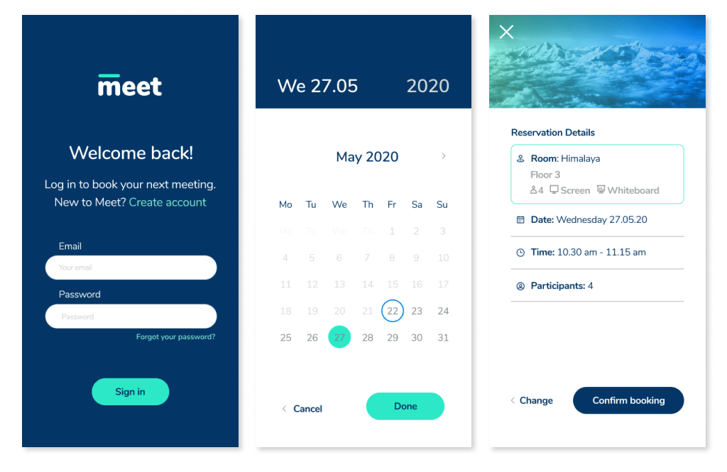 A web and mobile app for companies that need to book and manage their meeting rooms seamlessly.
